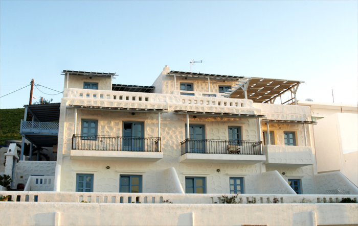 Hotel Ixthioessa is situated at the A Pounda area, near the peripheral road leading to the chora (Center) of the island. We are 1 km away from the chora (Center), 4 km away from the port of St. Andreas and 9 km away from the airport.
